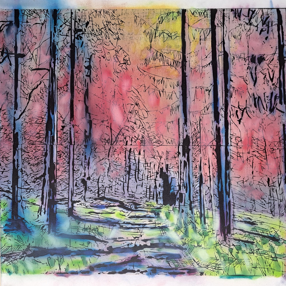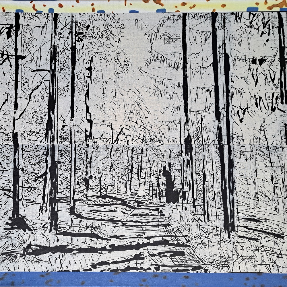 Holzschnitt und Öl auf Leinwand/Woodcut and Oil on Canvas, 80 x 80 cm